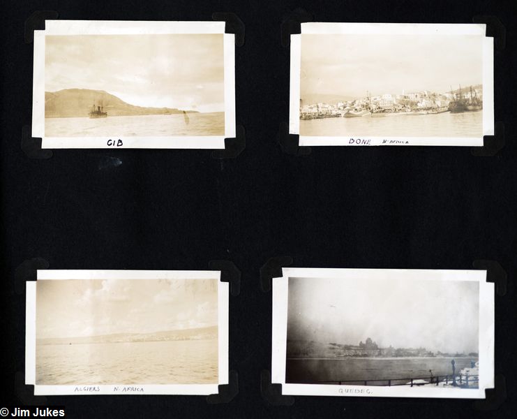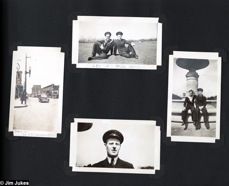 Pages from Jim's wartime photo album. The images on the pages are in no discernable order and some are quite faded. However, for an able seaman, on a corvette, in the middle of a war, it is quite remarkable that he managed to record them.